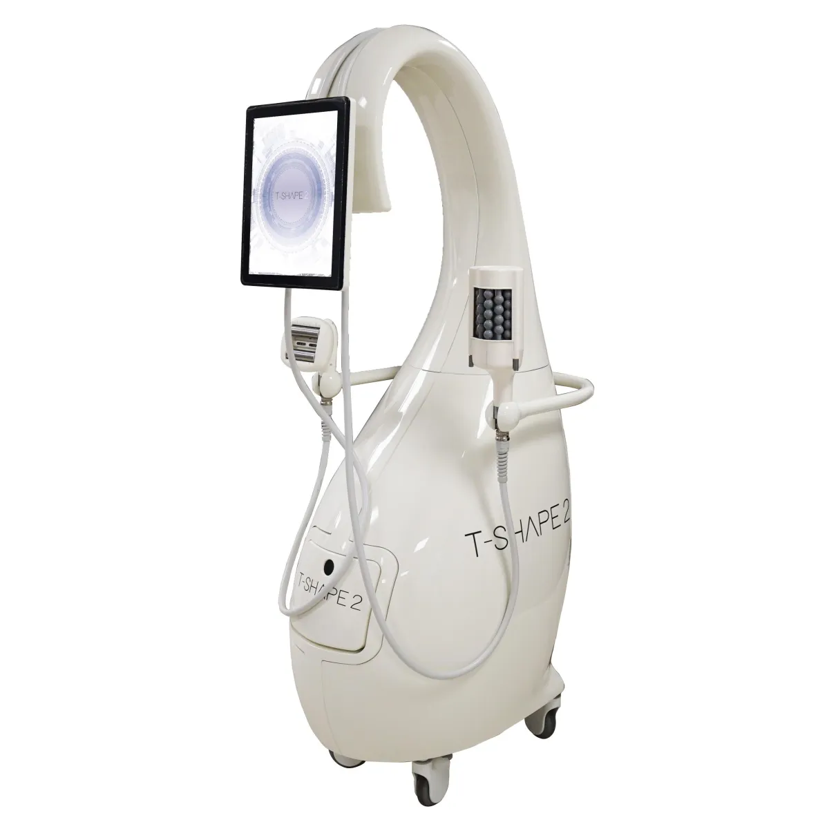 T-Shape 2 uses radiofrequency (RF), low-level laser therapy (LLLT), and vacuum therapy to tighten skin, smooth cellulite, and reduce fat: